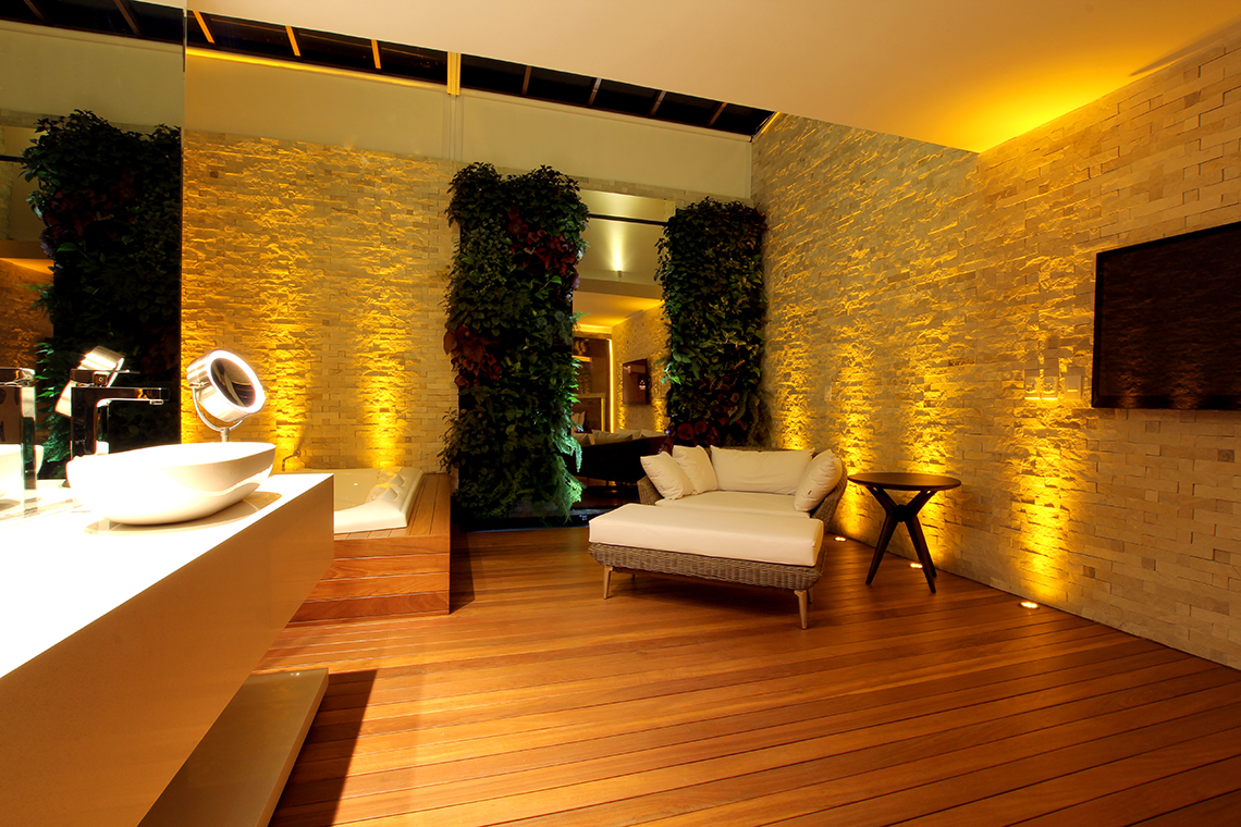 A Suíte Ar Spa conta com o melhor que a hotelaria premium tem a oferecer. Luxo, sofisticação e elegância que surpreende até os hóspedes mais exigentes. A decoração contemporânea com elementos orientais remetem a um SPA para que vocês se sintam relaxados e revigorem as energias. O deck externo com teto retrátil automático possui Hidro Jacuzzi, poltronas e jardim vertical.