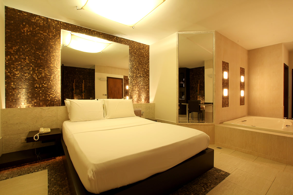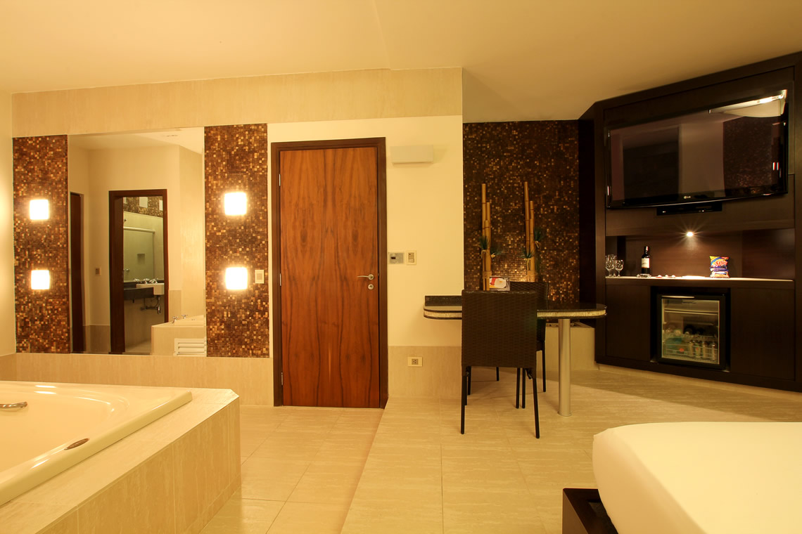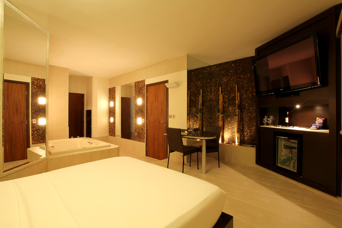 Dentre seus atributos, se destacam: ar condicionado split, banheira Jacuzzi, canais eróticos, adega, wi-fi, sauna úmida e super ducha com cascata.